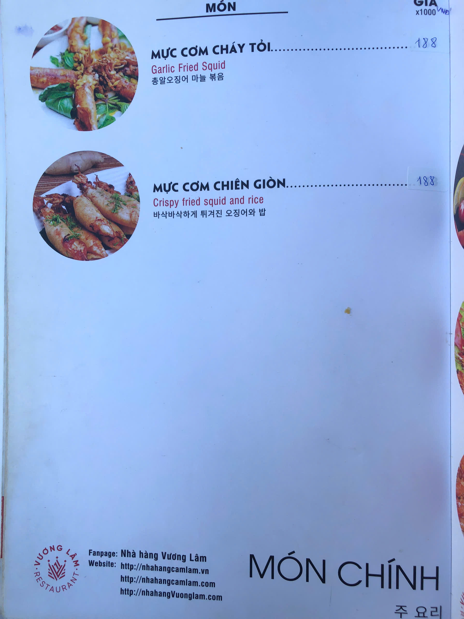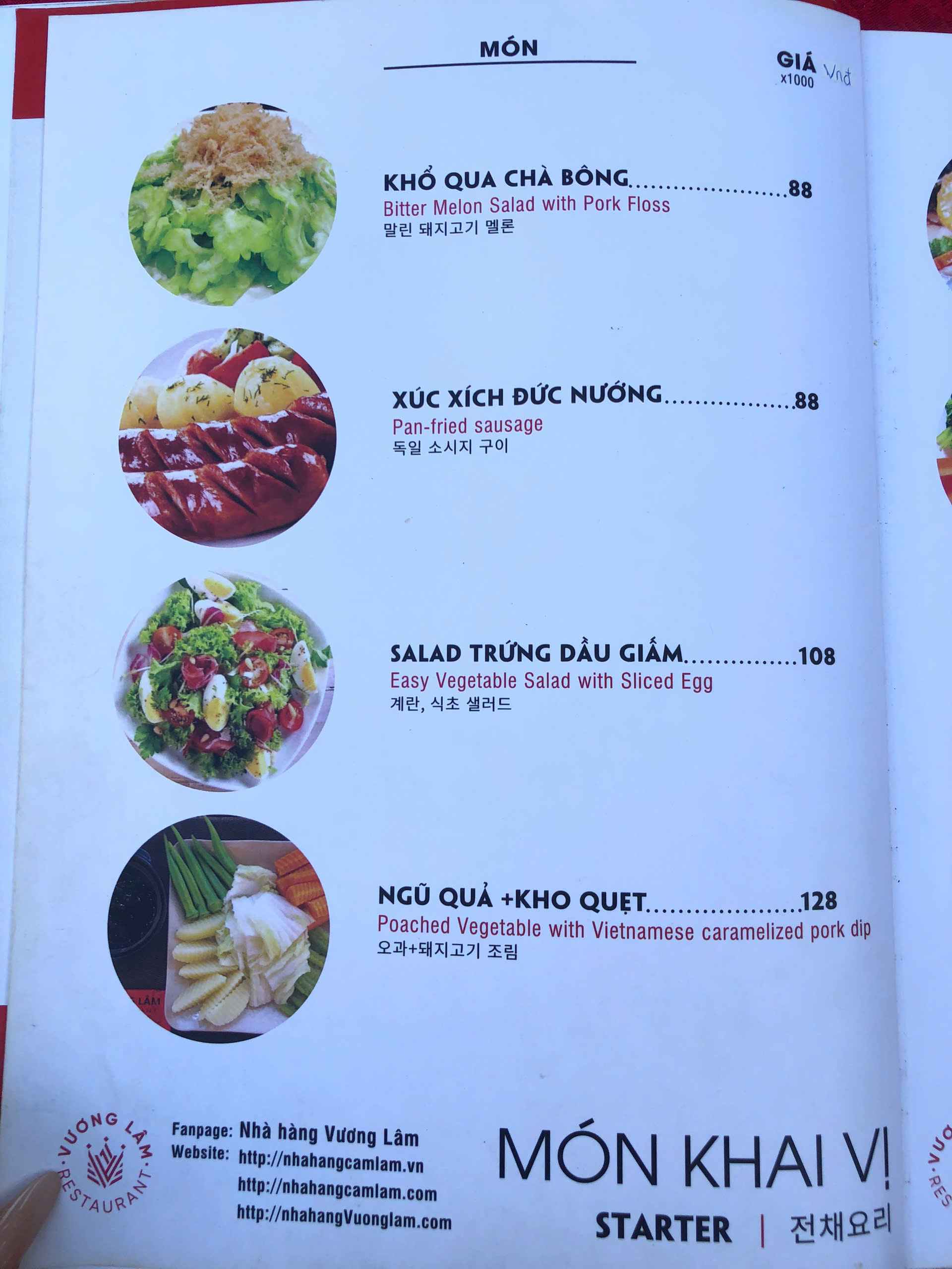 Thực đơn nhà hàng